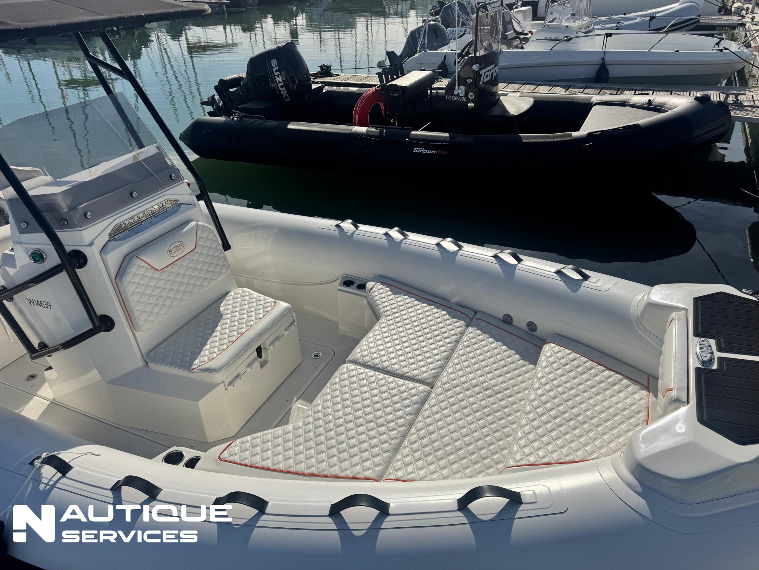 Un bateau idéal pour vos sorties en famille ou entre amis avec toutes les options de série (ancre électrique, ttop, douchette eau douce, bain de soleil avant et arrière, table de pique nique etc). Une coque très sécurisante et perfomante.
